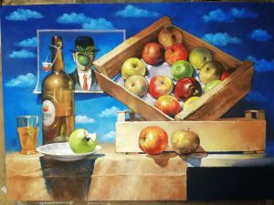 My canvases explore unexpected juxtapositions and distortions of forms, inviting symbolic interpretation.
